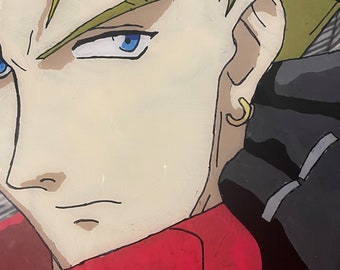 He is a gifted superhuman with amazing fighting abilities. Web Vash The Stampede - Trigun Vash The Stampede is the protagonist of Trigun a manga created by Yasuhiro Nightow in 1995 which later got adapted into an anime series. Wolfwood a chain smoker is sucking on a lolipop.