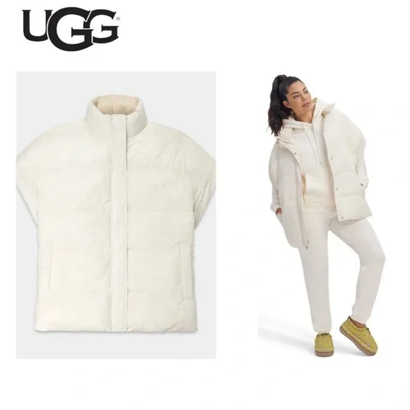 Ugg Jackets Coats Ugg Womens Sydnee Puffer Vest Xsmallreversible Cream Tan Zipper Oversized Poshmark